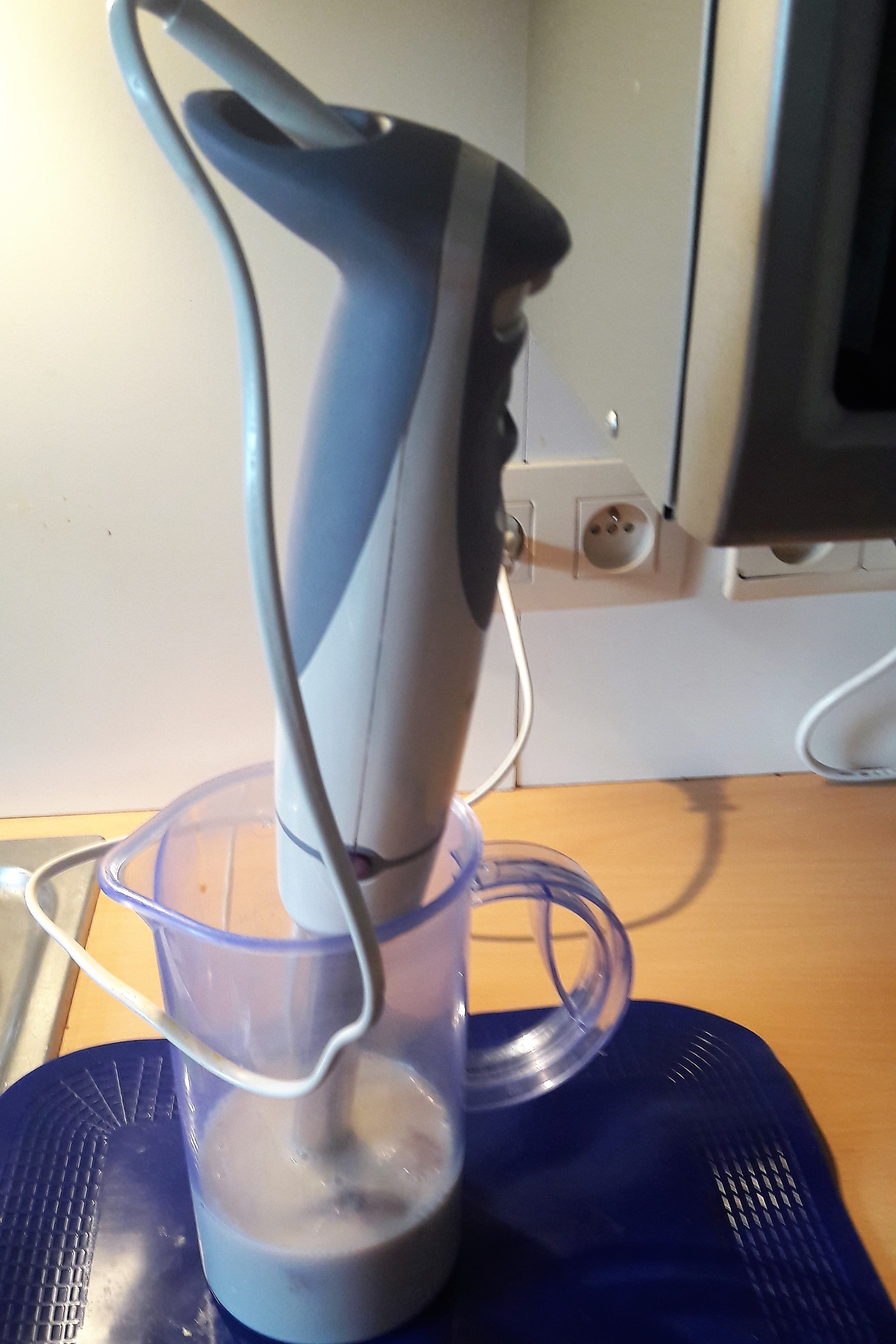 Een staafmixer en een antislipmatje. (Of een blender, maar ik vind dat wat te veel gedoe voor zo’n simpel recept.)