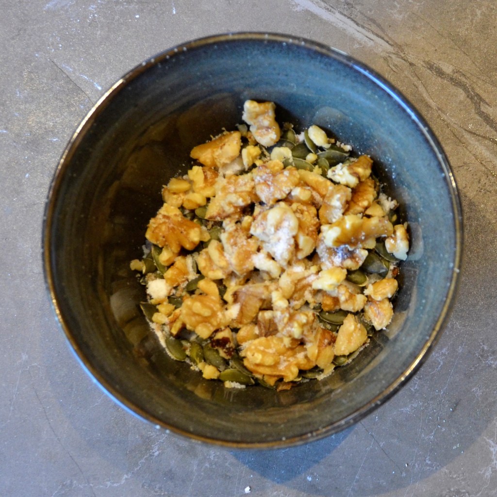 - grote hand walnoten, in stukjes gebroken met je hand
