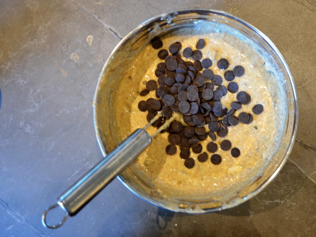 Plots kwam ik op het idee om er ook wat chocoladedruppels aan toe te voegen. Dat leek mij gewoon kei lekker daarbij! Dus heb ik er nog twee eetlepels donkere chocoladedruppels bij gedaan, gewoon omdat het kon… 😉