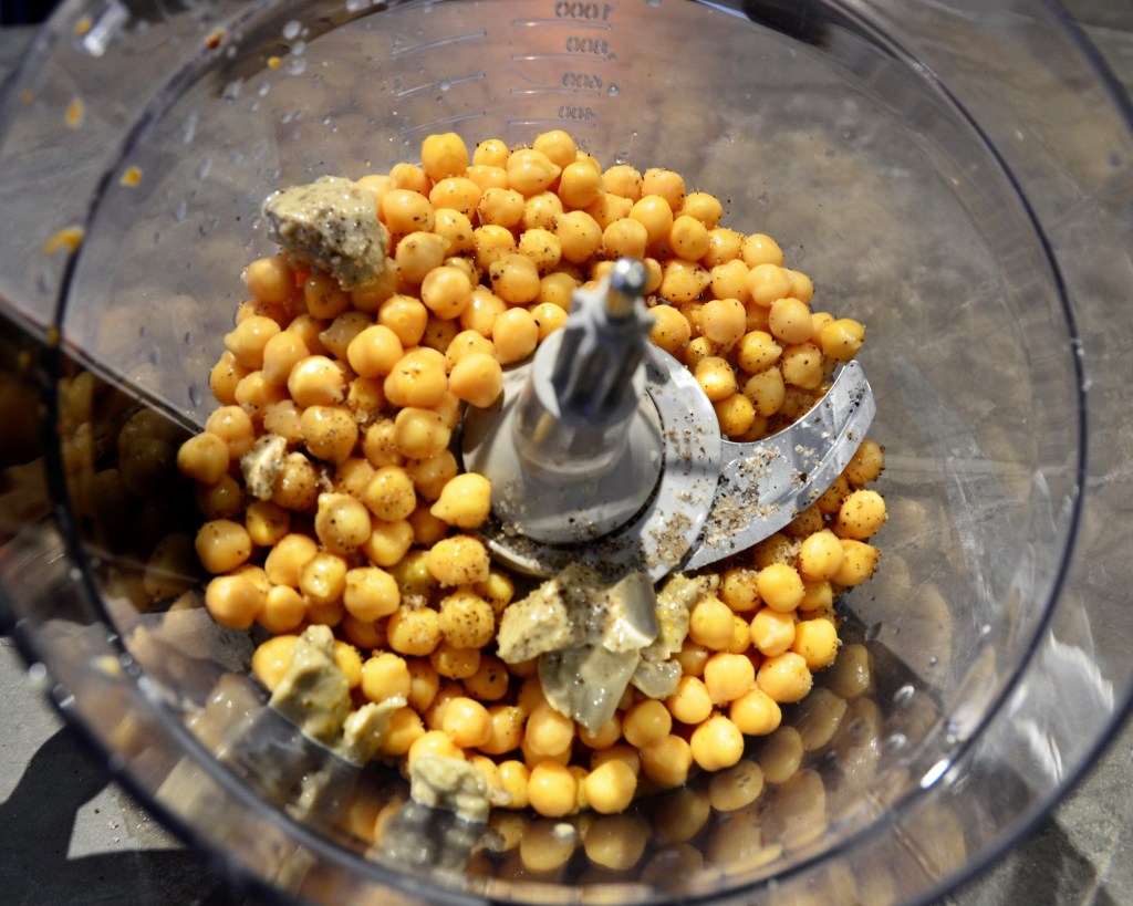 Daarna doe je de kikkererwten in de foodprocessor.