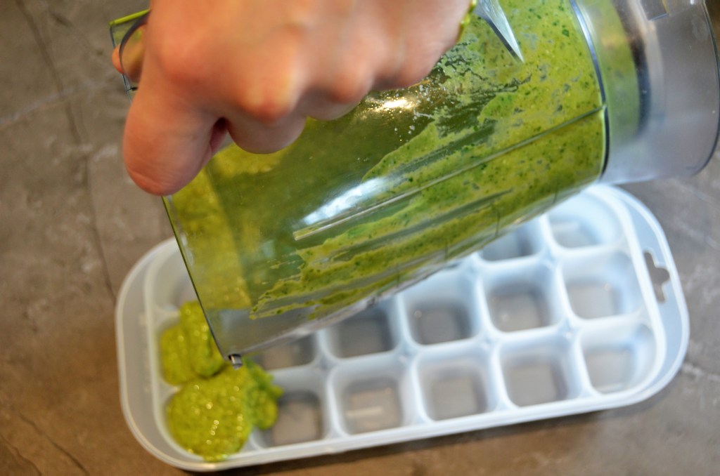 Na het dresseren op de borden, ga je nog redelijk wat pesto over hebben. Als je de pesto wat langer wilt bewaren, kan je die in een ijsblokvormpjes invriezen. De volgende keer als je dan een gerecht met pesto wilt maken, heb je maar gewoon een ijsblokvormpje uit de diepvries te halen. En dan heb je zelfgemaakte pesto!