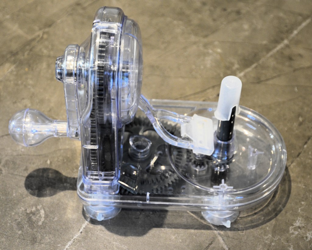 Hieronder staat mijn appelschiller. Je prikt de appel erop en laat de mesjes hun werk doen, terwijl je draait aan de hendel. Je kan zo een appelschiller hier vinden: https://www.bol.com/be/nl/p/appelschiller-appelschilmachine-appelschilapparaat-roterende-fruit-dunschiller-schiller-groen/9300000123253293/?referrer=socialshare_pdp_www