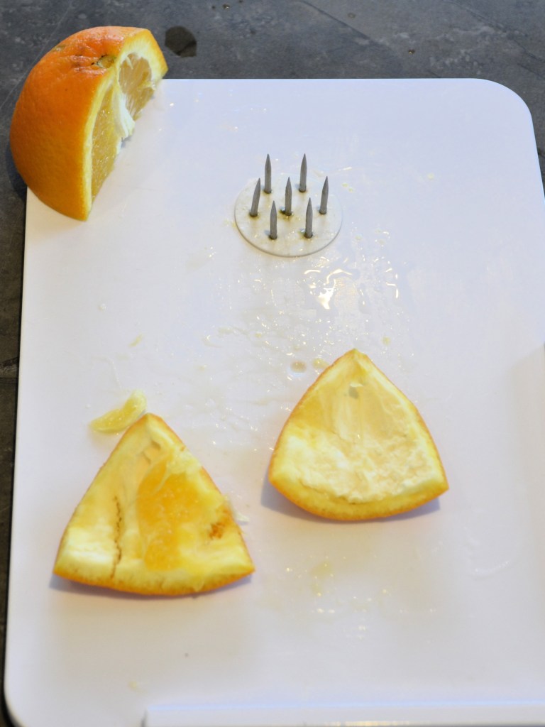 - Snijd die helft weer middendoor. herrhaal dit tot je 8 partjes hebt.